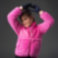 Teddy fleecejakke med lynlås og opretstående krave. "Beskyttelse" i toppen af lynlåsen, der dækker lynlåsen under hagen.
