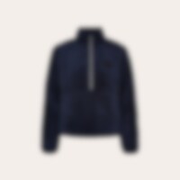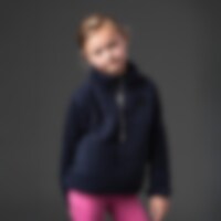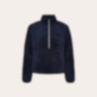 Superblød luftig teddyfleece-trøje, halv lynlås. Dekorativ quiltning ved skulderen. Lynlåsen er lang, så det er muligt at trække trøjen over hjelmen. Elastisk for forneden, ærmer og lommer.