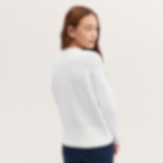 Striktrøje i blød og behagelig kvalitet. Løstsiddende pasform med rund hals og ribkant i livet og på ærmerne.