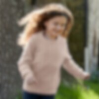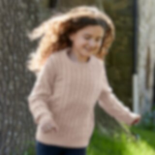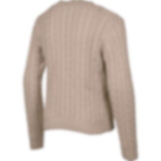 Kabelstrikket trøje med rund hals og med ribkanter i underkant og ved manchetter.