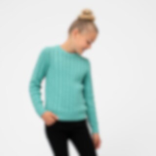 Klassisk kabelstrikket trøje med rund hals i behagelig bomuldskvalitet. Ribstrik i under- og ærmekanter.