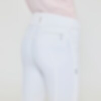 Vævede ridebukser med sadelsnit i strækbart funktionsmateriale. Formfast kvalitet, der er slidstærk, smudsafvisende og meget behagelig at have på. Knæforstærkning med grip, hvor grebet også fortsætter på indersiden af lårene og giver optimalt fæste og støtte i sadlen, uden at bukserne er fuldt forstærkede. Elastik ved anklerne. Normal taljehøjde med dobbelt lukning for at holde ridebukserne sikkert på plads og give øget komfort. To forlommer og to lynlåslommer bagpå. Diskret mobillomme med lynlås på ydersiden af låret. Stilfuld detalje med rhinsten ved lommerne giver et elegant look.