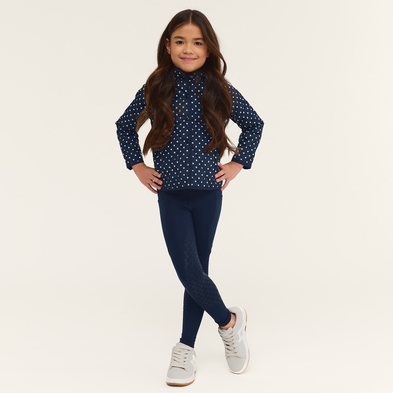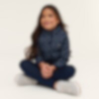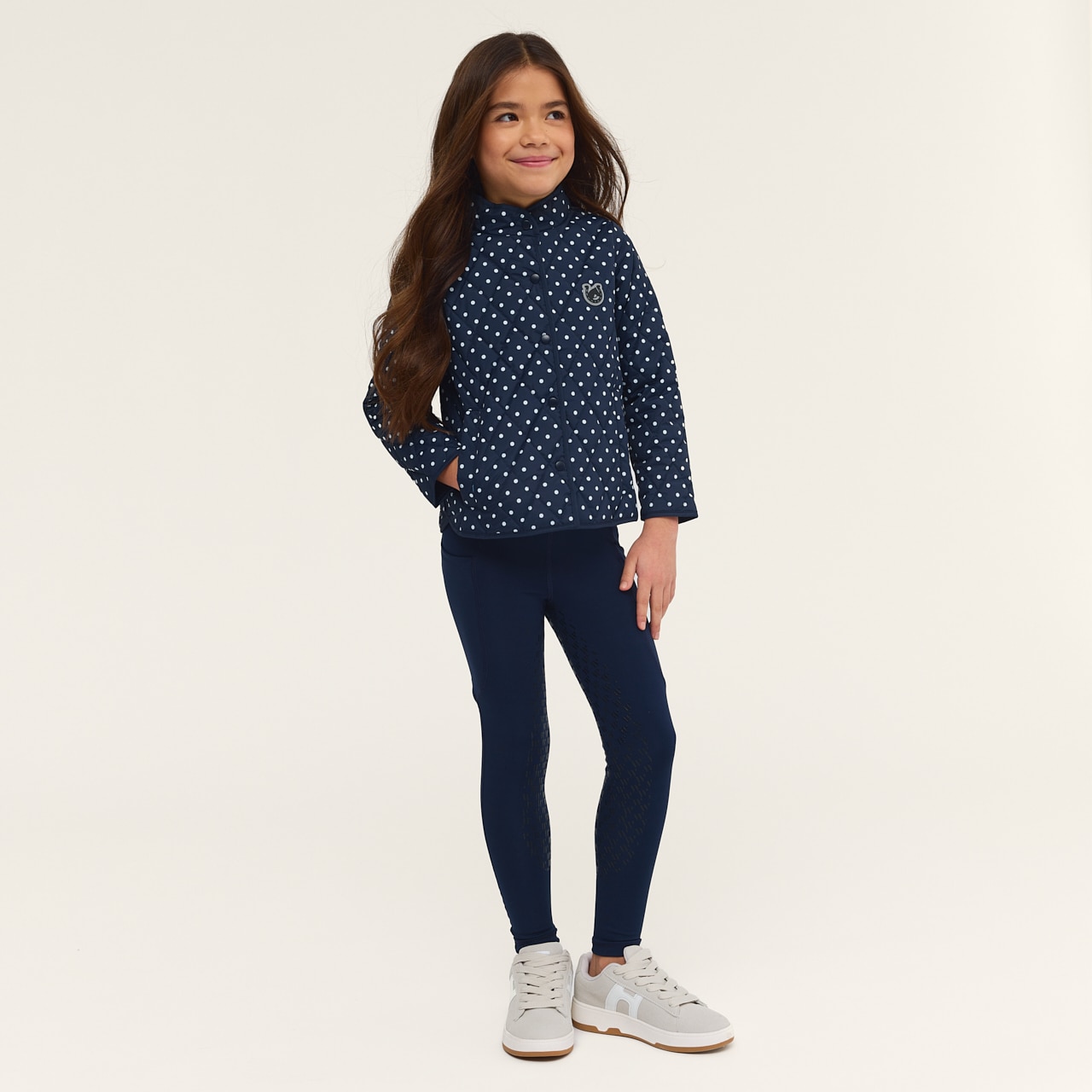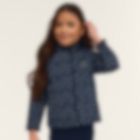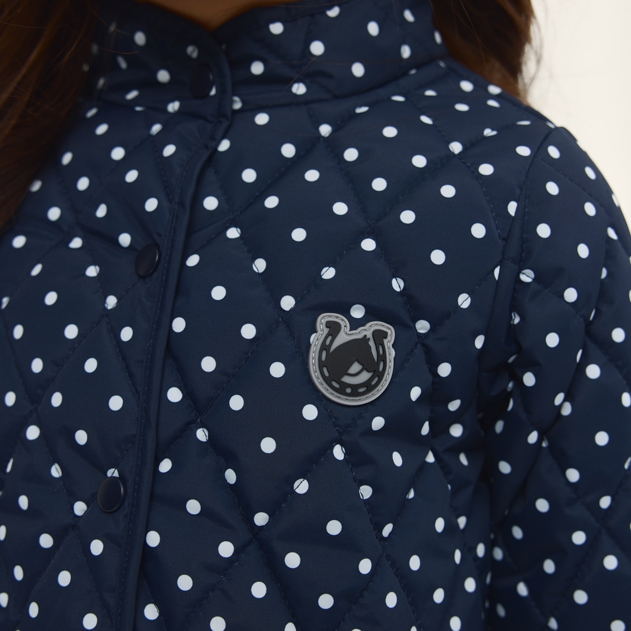 Quiltet forårs-/efterårsjakke i fint mønster. Knapstolpe med trykknapper og to forlommer.