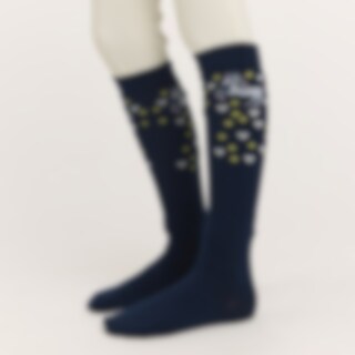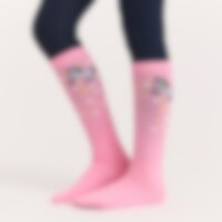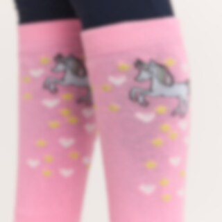 Strømper i dekorativt motiv med hest, stjerner og hjerter.