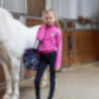 Langærmet trøje med høj krave og halv lynlås. Et lille frontprint med en farverig enhjørning. Teknisk og elastisk stof med svedtransporterende børstet bagside.