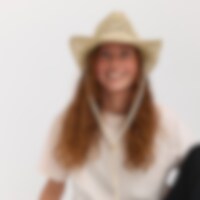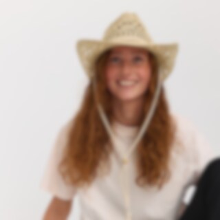 Flot stråhat med dekorativ løbegang. Perfekt både til at være på stranden og på tribunerne på solrige dage.