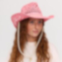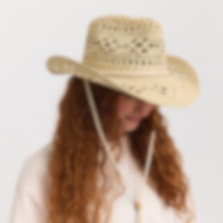 Flot stråhat med dekorativ løbegang. Perfekt både til at være på stranden og på tribunerne på solrige dage.