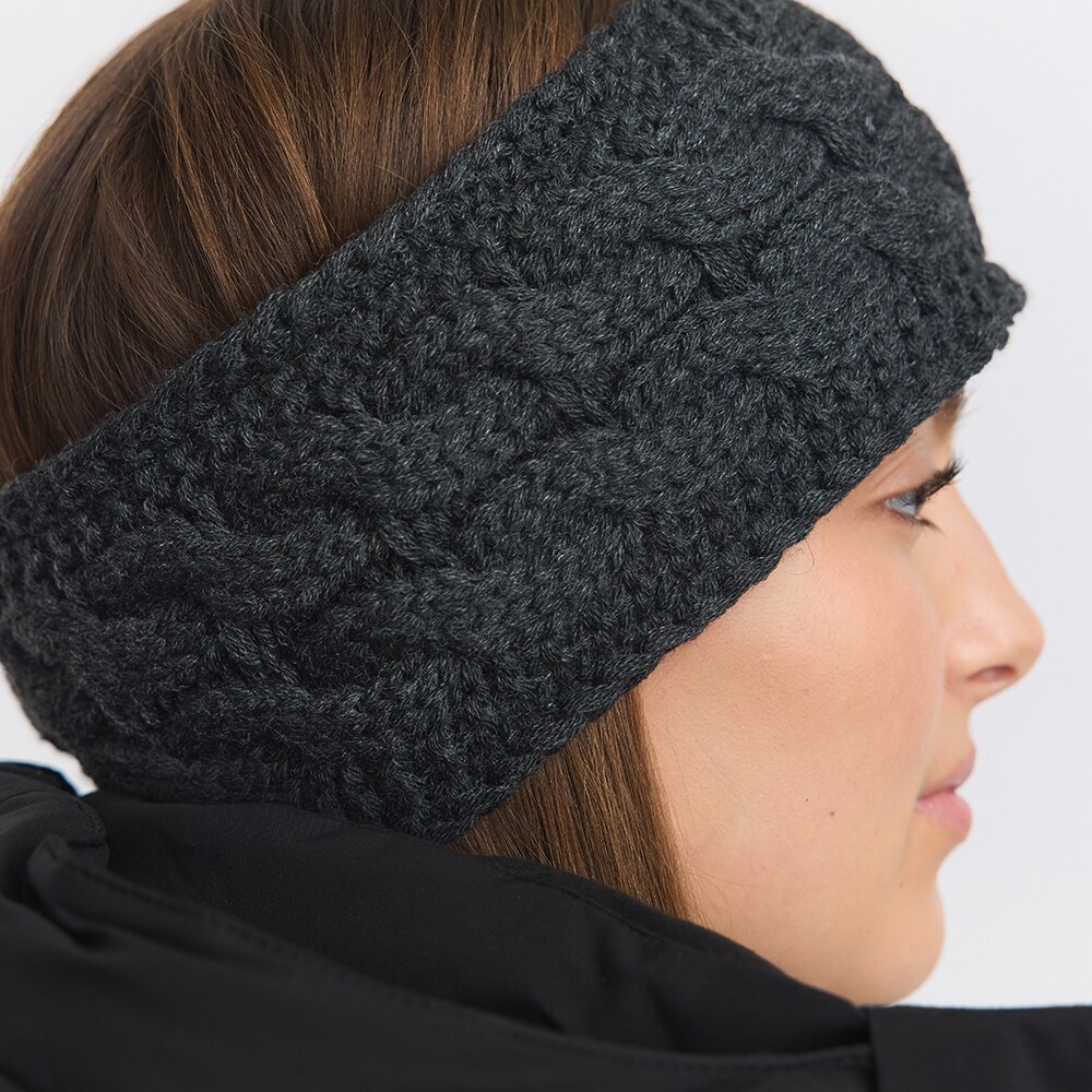 Varmt pandebånd med dekorativ kabelstrik. Indersiden er foret med blød fleece.