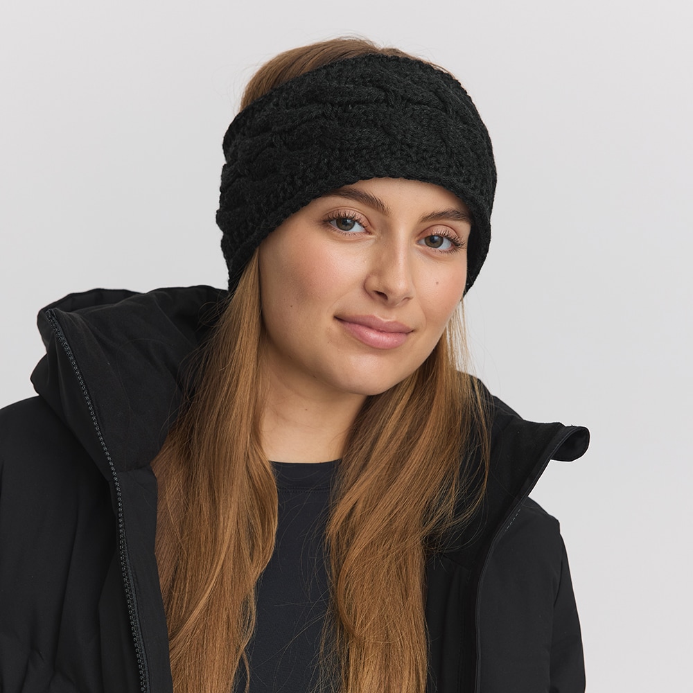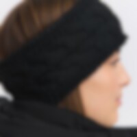 Varmt pandebånd med dekorativ kabelstrik. Indersiden er foret med blød fleece.