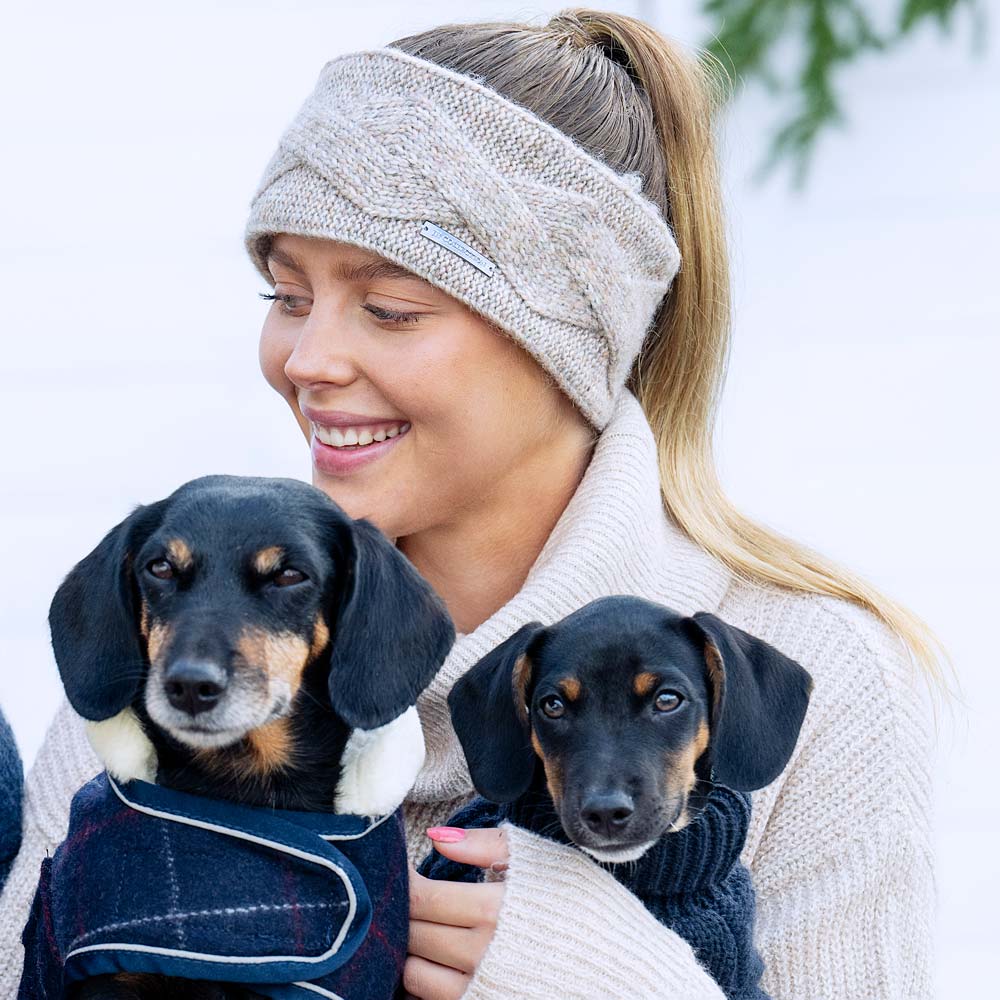 Varmt pandebånd med dekorativ kabelstrik. Indersiden er foret med blød fleece.