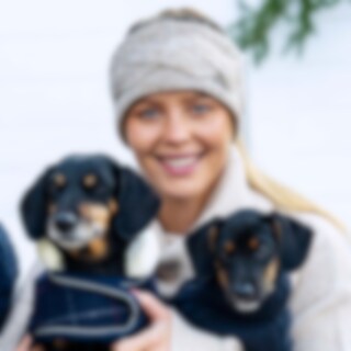 Varmt pandebånd med dekorativ kabelstrik. Indersiden er foret med blød fleece.