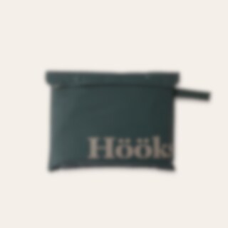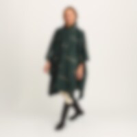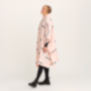 Regnponcho med hætte og slidser i siderne med trykknapper.