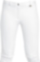 Knæforstærket med dobbelt stof. Skjult forlomme. Bæltestropper. Velcro ved ankel. Indv. benl.: Ca. 72 cm i damestørrelse.