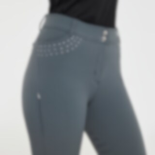 Vævede ridebukser med sadelsnit i strækbart funktionsmateriale. Formfast kvalitet, der er slidstærk, smudsafvisende og meget behagelig at have på. Knæforstærkning med grip, hvor grebet også fortsætter på indersiden af lårene og giver optimalt fæste og støtte i sadlen, uden at bukserne er fuldt forstærkede. Elastik ved anklerne. Normal taljehøjde med dobbelt lukning for at holde ridebukserne sikkert på plads og give øget komfort. To forlommer og to lynlåslommer bagpå. Diskret mobillomme med lynlås på ydersiden af låret. Stilfuld detalje med rhinsten ved lommerne giver et elegant look. Lidt lille i pasformen. Vi anbefaler derfor, at du går en størrelse op.