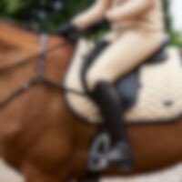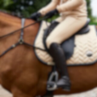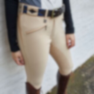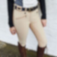 Ridebuks i blødt, strækbart funktionsstof med god åndbarhed. Stoffet er smudsafvisende. Fuld forstærkning med grip sikrer det bedste greb i sadlen. To lynlåslommer foran. Bæltestropper i linningen og elastisk ved ankel.