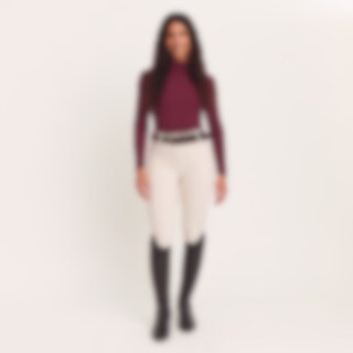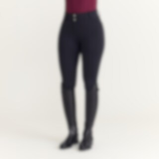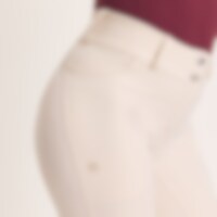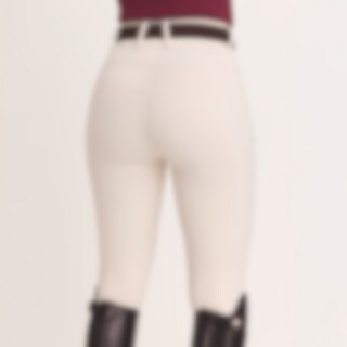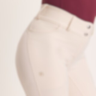 Stilren og tidløs ridebukser med sadeludskæring i stretchigt funktionsmateriale. Formfast kvalitet, som er slidstærk, nem at vedligeholde og meget behagelig at have på. Normalhøj talje med dobbel knaplukning, så ridebuksen sidder på plads og giver øget komfort. Linning med bæltestropper. Helskodde med PU-grip, der giver blød kontakt i sadlen. To åbne lommer foran og elastiske bukseben.