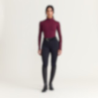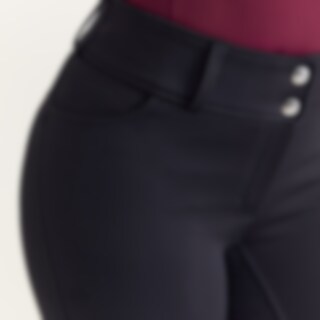 Stilren og tidløs ridebukser med sadeludskæring i stretchigt funktionsmateriale. Formfast kvalitet, som er slidstærk, nem at vedligeholde og meget behagelig at have på. Normalhøj talje med dobbel knaplukning, så ridebuksen sidder på plads og giver øget ko