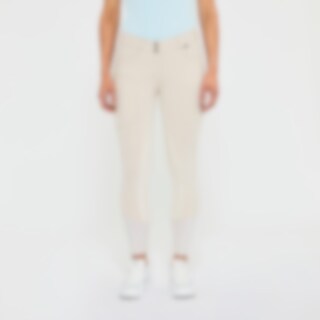 Sadelskåret ridebuks i økologisk bomuld. Fuldt forstærket med Daewoo, der giver et godt og blødt fæste i sadlen. Skønne basisridebukser med normal taljehøjde. Elastisk linning med dobbelt lukning for at holde ridebukserne sikkert på plads og give øget k