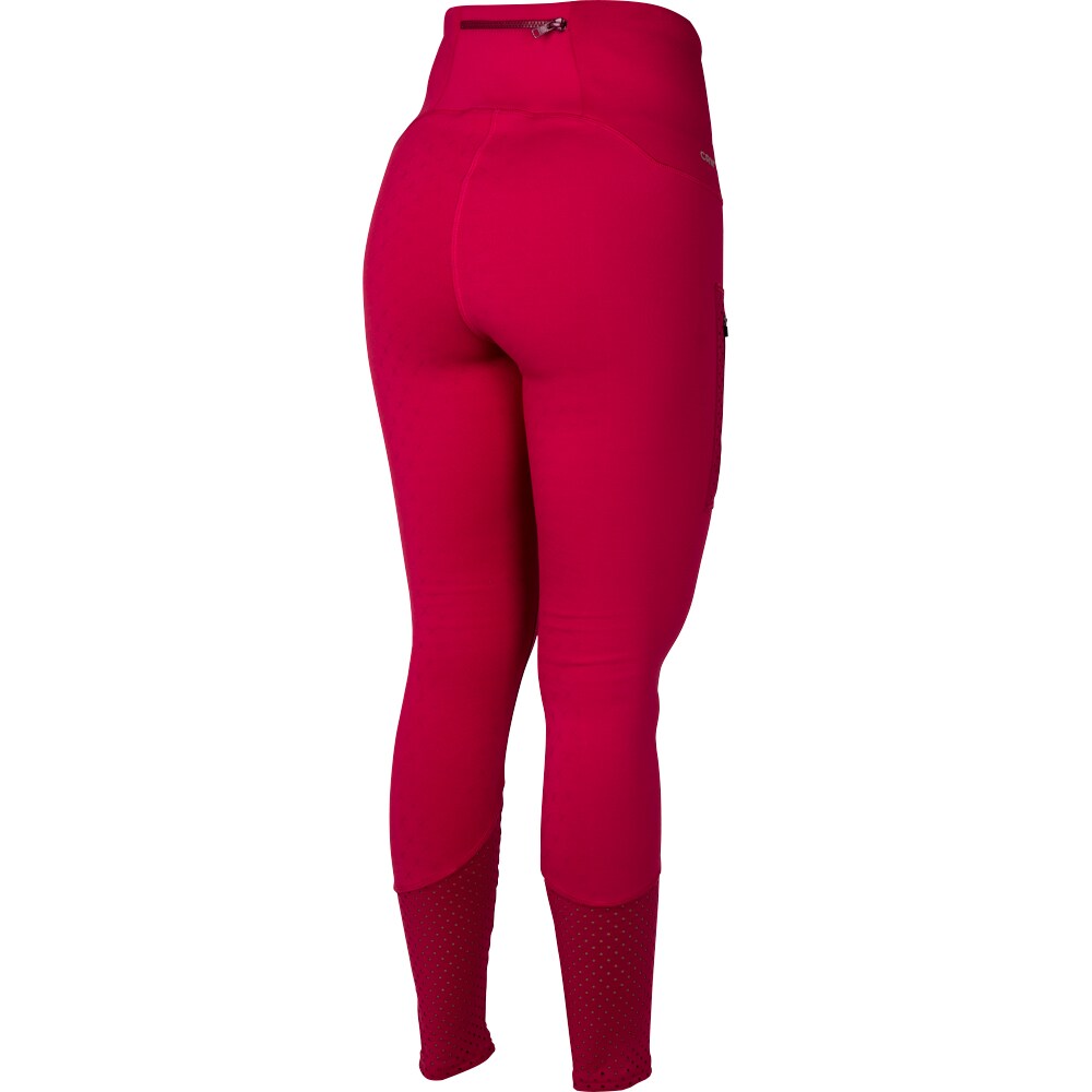 Fuldt forstærkede ridetights i 4-vejs strækbart funktionsstof med børstet inderside. Lynlåslomme til mobil på højre ben samt på bagsiden af linningen. Bred linning for den bedste komfort. Strækbar benafslutning i perforeret jersey.