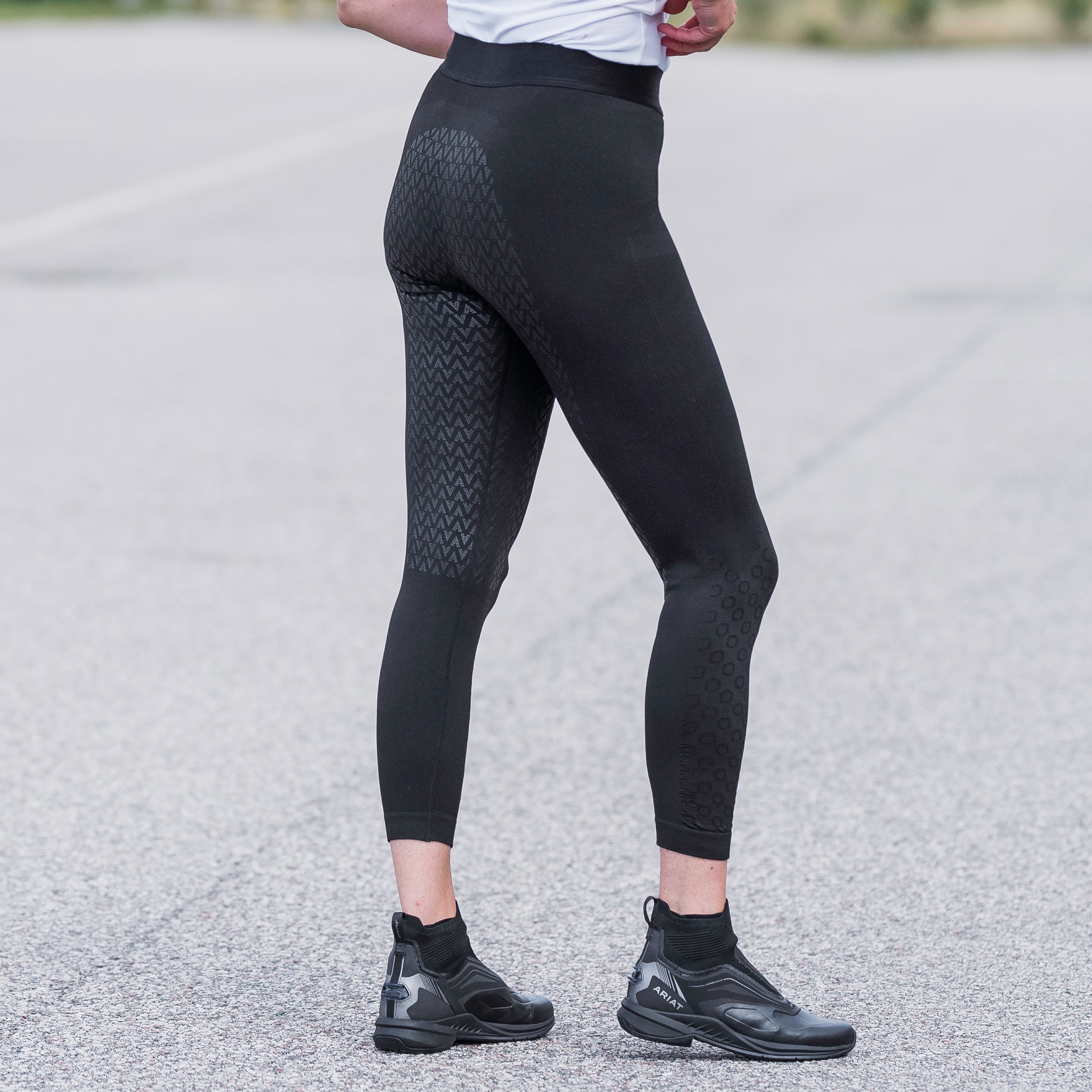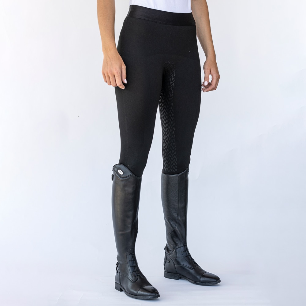 Seamless ridetights i kropsnær facon, der er som et ekstra lag hud, uden sømme, der gnaver. Kile i skridtet for den bedste komfort. Fremstillet i et funktionsmateriale, som ånder og tørrer hurtigt. Fuldt forstærket med PU-grip. Passer til dig, som vil have det behageligt under lange, varme rideture, eller bare for at holde behagelig kølig, når du arbejder i stalden.