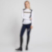 Ridetights i let, strækbart trikotstof, der er særdeles behagelige at have på. Normalhøj talje med dekorativt strækbart logobånd og printede detaljer på med benet dem tøjet et sporty look. Fuldt forstærkede med grip, der giver et godt fæste i sadlen. Diskret mobillomme på benet. Den lukkes med lynlås. Kvaliteten er smudsafvisende og let at vedligeholde.