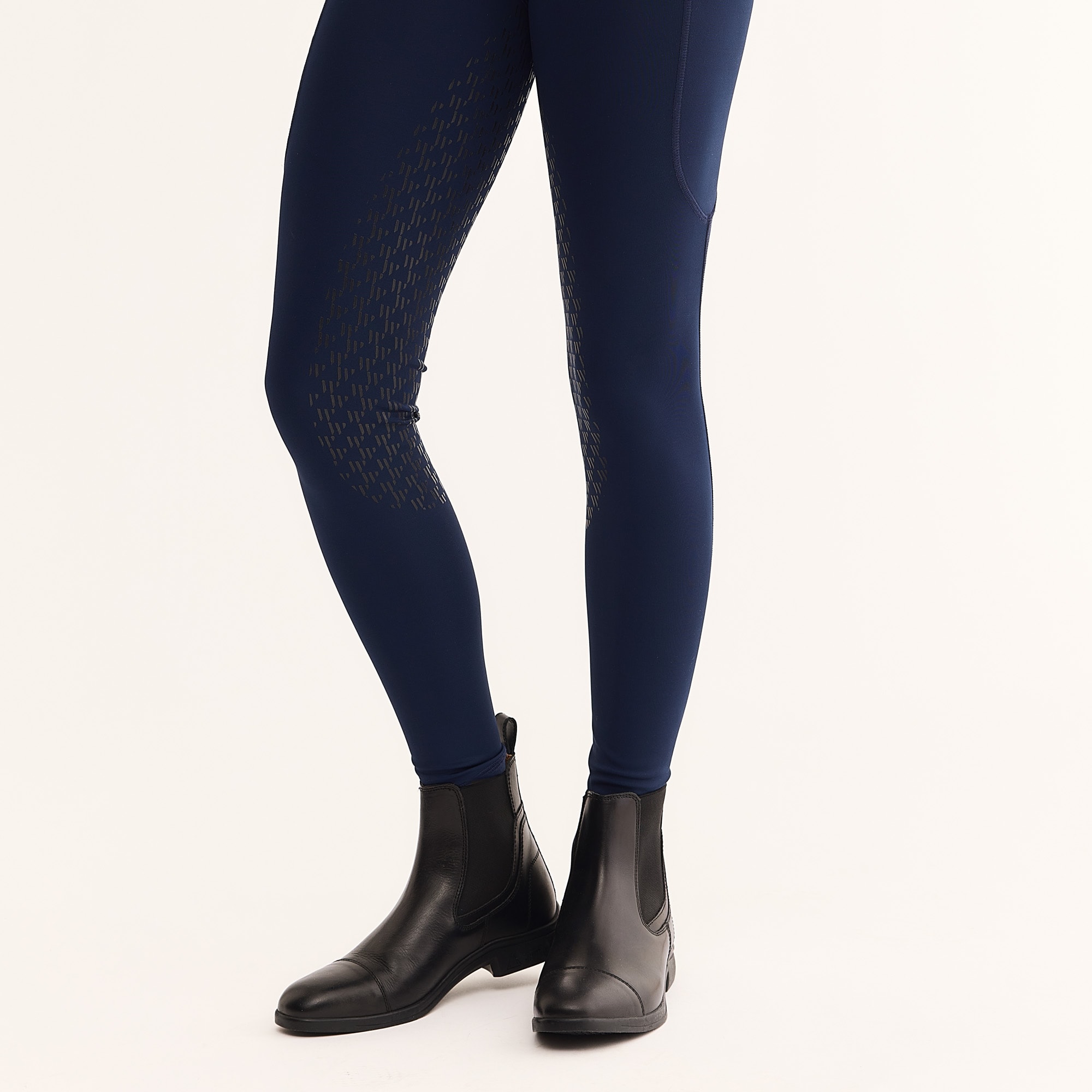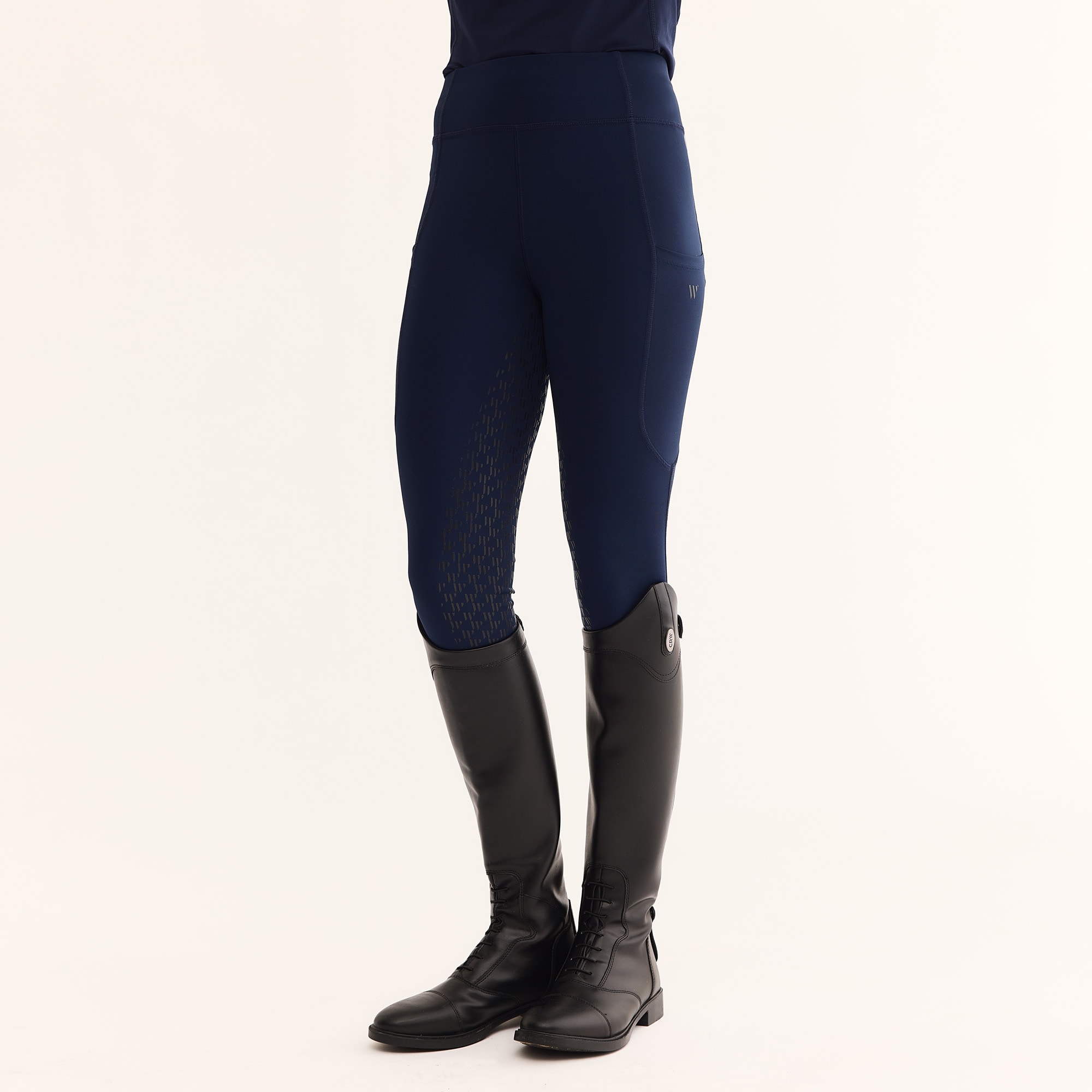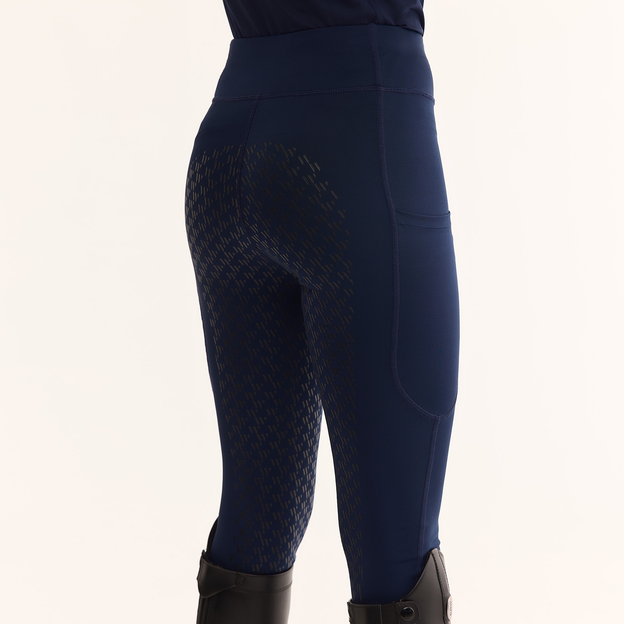 Stilfulde ridetights med normal taljehøjde. Kvaliteten er blød og elastisk og lavet i et let funktionsmateriale, der er meget behageligt at have på. Fuldt forstærkede med grip, der giver et blødt fæste i sadlen. To praktiske lommer til mobiltelefonen på ydersiden af låret. Elastiske benafslutninger.