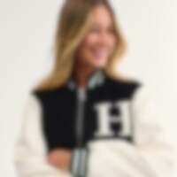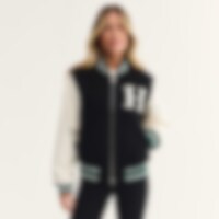Retro-inspireret baseball-jakke med logo-detaljer. Jakken er fremstillet i en grovere vævet polyesterkvalitet og har et quiltet foder indvendigt. Ærmer i PU-læderimitation. Ribbede ærmeafslutninger, nederste kant og krave.