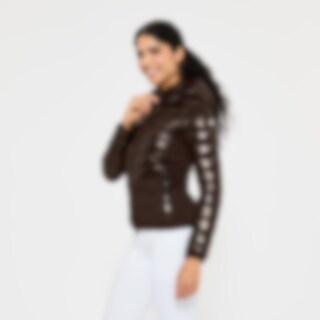 Figursyet hybridjakke med shimmer-effekt på stoffet. Polstret med polyestervat. Sidepaneler i strækbar powerfleece med børstet inderside sikrer optimal komfort og pasform. Aftagelig hætte og krave med fleece på indersiden. Praktisk to-vejs lynlås med hagebeskytter. Lommer med svejsede lynlåse i lak.