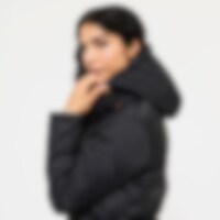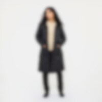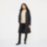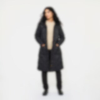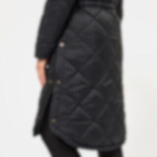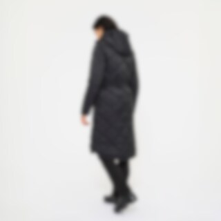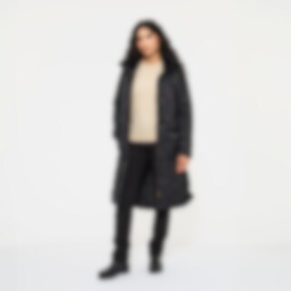 Quiltet og vatteret frakke i 100 % genbrugsmateriale med fløjlsdetaljer. Justerbar talje, der giver dig mulighed for at justere pasformen efter behov. Hætten har høj krave med blødt, varmende foer i imiteret pels. Hætten er også justerbar. Frakken har gennemgående to-vejs lynlås med knaplukning og mulighed for meget opbevaring i form af fire lommer med knapper foran. På hver side af frakken er der to rideslidser, som gør frakken funktionel på hesteryg.
