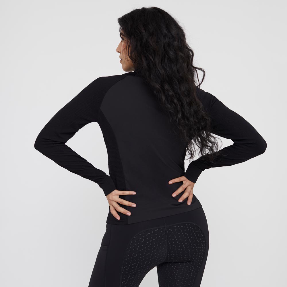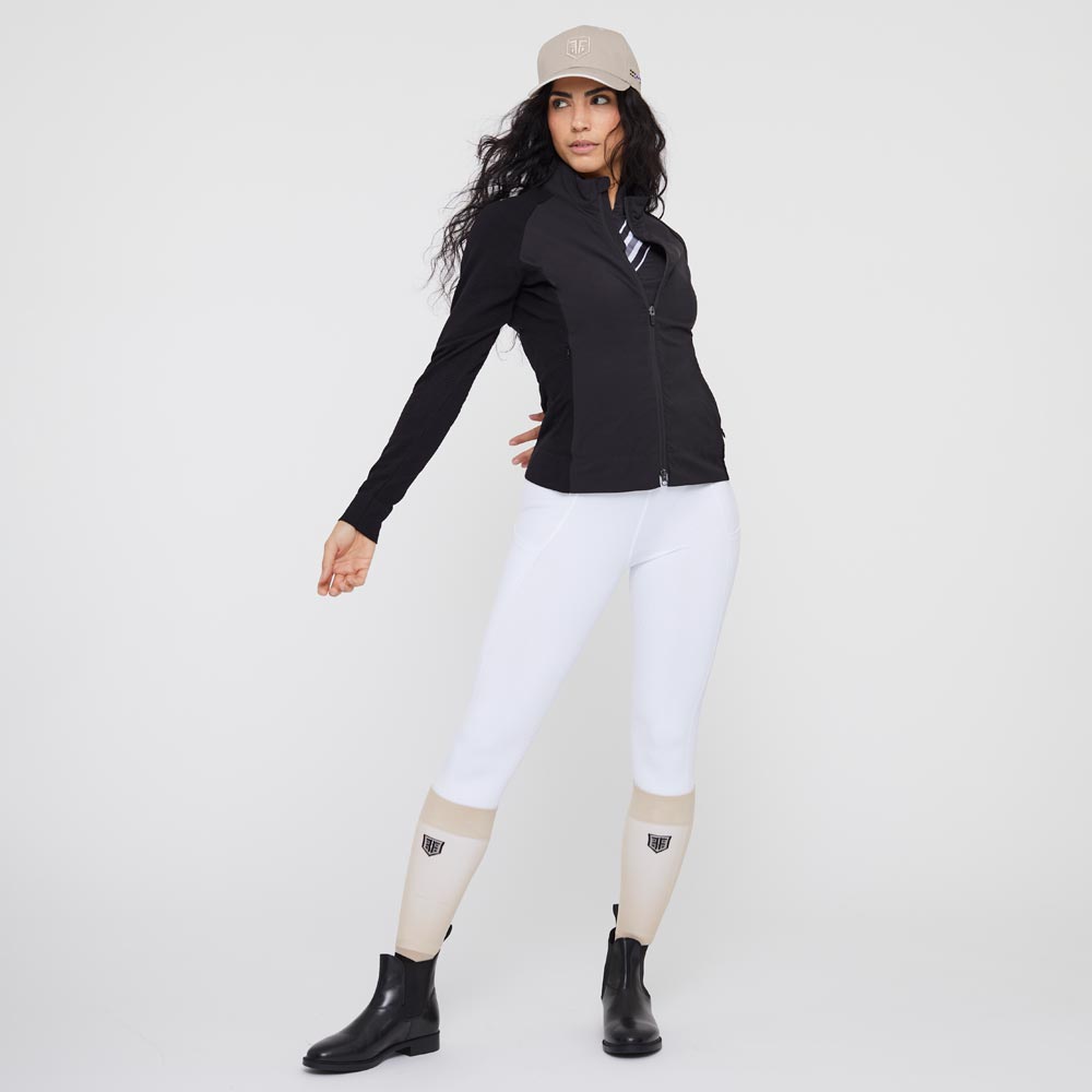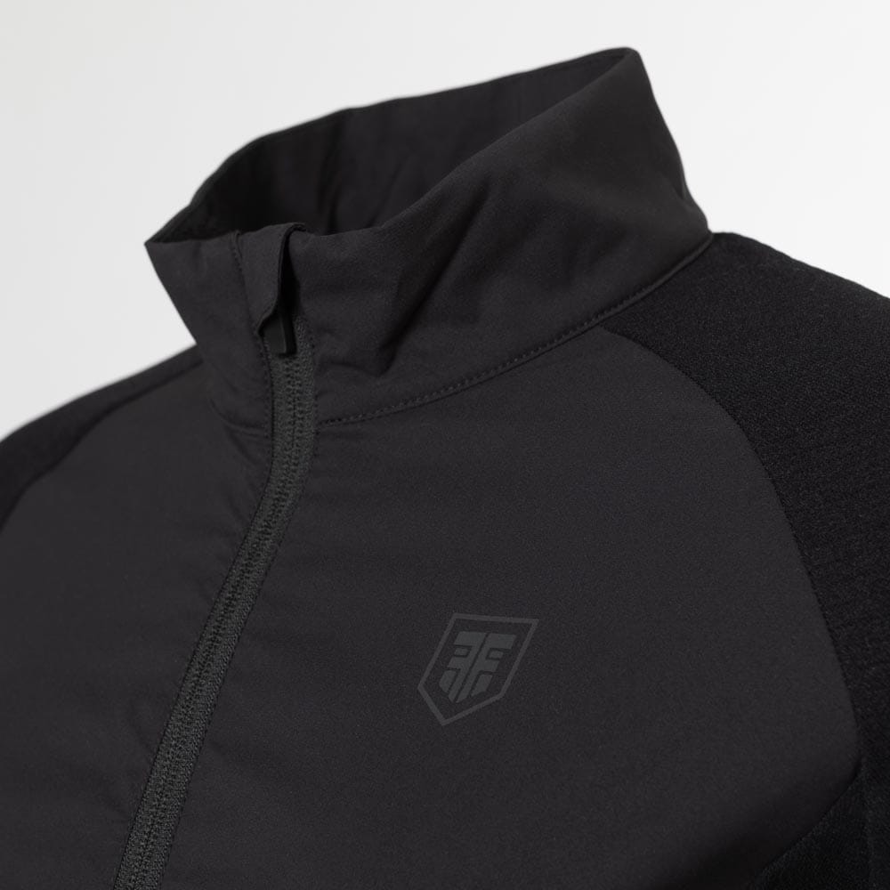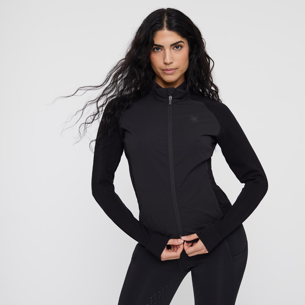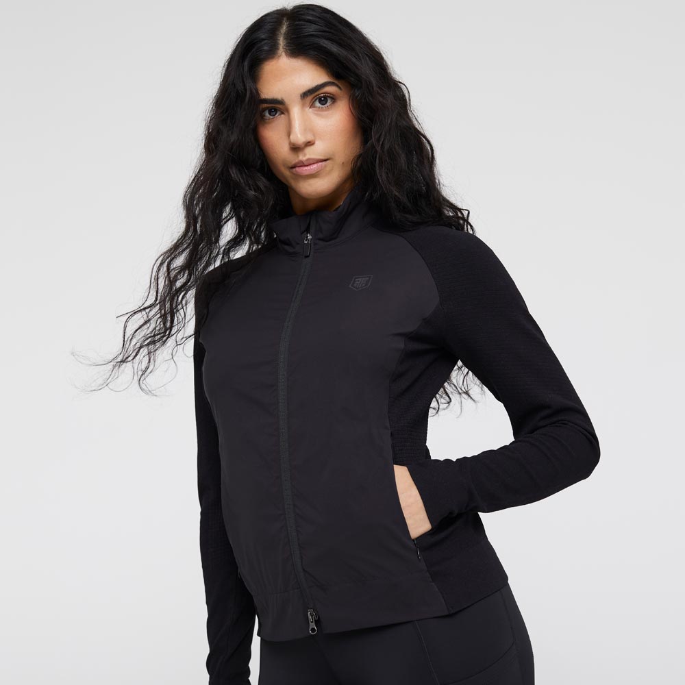 Sporty og stilfuld jakke i tynd kvalitet, designet til god mobilitet. Ærmer og sider er strikket i funktionsmateriale og er sømløse, hvilket giver øget komfort uden sømme der gnaver. De mønsterstrikkede dele forbedrer også pasformen. Jakken har en fleksibel og figursyet pasform. Praktiske detaljer med to-vejs lynlås og beskyttelse af lynlåsen til hagen, samt to diskrete lynlåslommer. Diskret logoprint på brystet. Jakken er passer bedst til forår og sommer eller til at blive brugt som lag under jakken.
