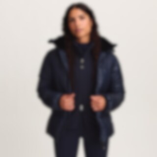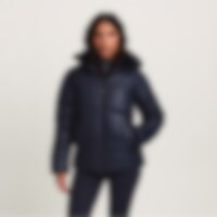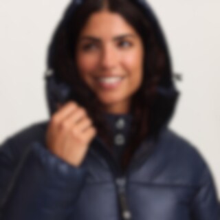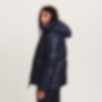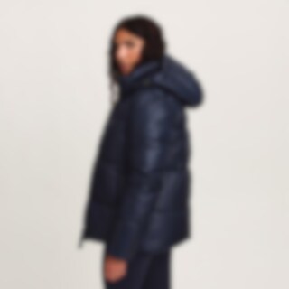Sporty og varm vinterjakke med en blank finish. Polstring lavet af genanvendt polyester, der har egenskaber, der efterligner og giver en følelse af dun.