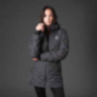 Lang varmquiltet ridejakke med stormmanchet og aftagelig hætte. Kraven og lommerne er foret med teddyfleece. Lange lynlåsåbninger. Reflekterende logoprint på brystet. 100 % polyester med TPU-membran. Vandafvisende 3000 mm.