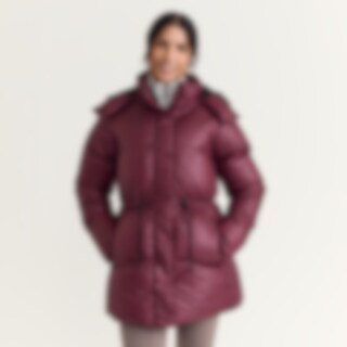 Vinterjakke, der er designet til at holde dig varm under kolde vejrforhold. Blank overflade. Polstringen af genanvendt polyester har egenskaber, der efterligner og giver en følelse af dun.