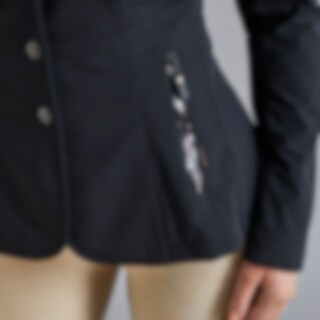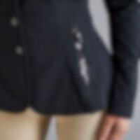 Stævnejakke i 4-vejs, strækbart stof giver ekstra bevægelsesfrihed. Ydermaterialet er fremstillet i funktionel polyamid, hvilket holder dig kølig og komfortabel ved brug samtidig med, at polyamid også er særdeles slidstærkt. Indersiden består en bonderet jersey i grå kontrastfarve. Det gør også, at jakken er blød og lækker at have på. Lukkes med skjult lynlås og knapper med JH-logo foran. To lynlåslommer foran. Rideslids bagpå.