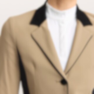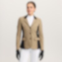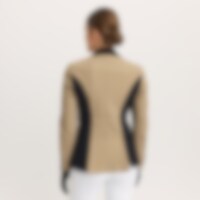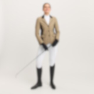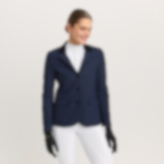 Strækbar, figursyet stævnejakke i slidstærk nylon. Lukkes med skjult lynlås og knapper foran. To frontlommer. Dobbelt rideslids bagpå. Krave med blød alcantara. Jakken er dekoreret med et skinnende satinbånd og skinnende knapper. Dele af indersiden er lavet i stretch for øget bevægelse og komfort.