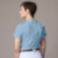 Kortærmet stævnetop i elastisk funktionsstof. Sidepaneler, ærmer og overdel af ryg i stribet netstof, som giver god ventilation og åndbarhed. Kraven har fine detaljer med rhinsten og logotryk. Diskret lynlåslukning bagpå.