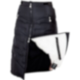 En varm og vejrbestandig overtræksnederdel med to-vejslynlås foran og slids med lynlås bagpå. Elastiske stropper på indersiden, som man sætter fast omkring lårene for at holde nederdelen på plads. Elastisk talje bagpå for perfekt pasform og taljejustering med velcro. To fleeceforede lynlåslommer foran. Nederdelen har et sporty look og er lavet af masser af varmende syntetisk dun, der har samme varmende egenskaber som dun – med den fordel, at den bevarer de varmende egenskaber selv i fugtig tilstand. Yderstoffet består af vejrbestandigt materiale, som gør vinternederdelen velegnet til alle, der bruger meget tid udenfor i vinterhalvåret, uanset vejret. Nederdelen er imprægneret med Rudolf Bionic Finish Eco, som er en vand- og smudsafvisende behandling, der er mere miljøvenlig og uden tilsatte perfluorerede stoffer (PFC). Dette gør, at du kan have brug for at gentage imprægneringen, hvis vandet på ydersiden holder op med at lægge sig som perler. Der kræves ingen specielle vaskemidler, men undgå blødgørende skyllemidler, der nedsætter behandlingens funktion. Brug Organotex ved genimprægnering.
