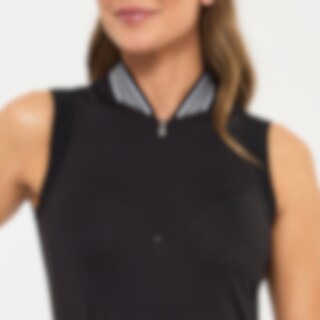 Ærmeløs top i blødt og behageligt funktionsmateriale. Funktionelt design med figursyet pasform. Den ribstrikkede opretstående krave med indvævede striber giver et tidløst og sporty look samt ribkanter ved armhulerne. Skjult lynlås foran. Perfekt til brug