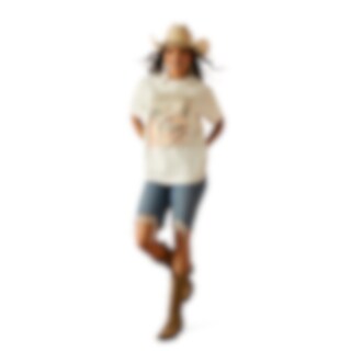 Denne t-shirt tilføjer western-vibes til dit hverdagslook. Perledetaljer tilføjer et feminint touch, mens den løse, afslappede pasform blødgør looket.