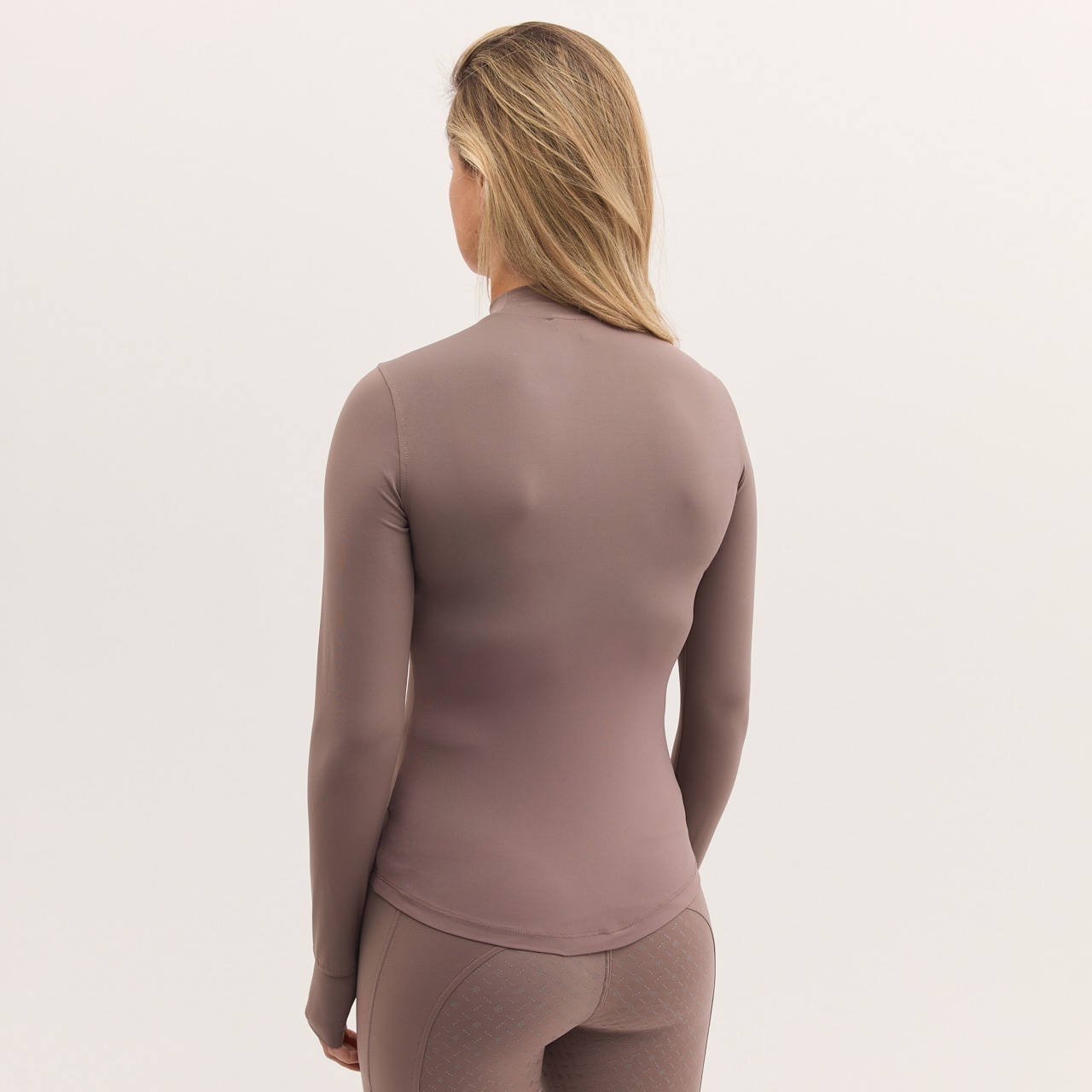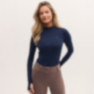 Langærmet trænings- og stævnetop i blødt og strækbart funktionsmateriale. Hurtigtørrende og smudsafvisende kvalitet. Tætsiddende pasform med mockneck. Tommelfingerhuller i ærmekanten.