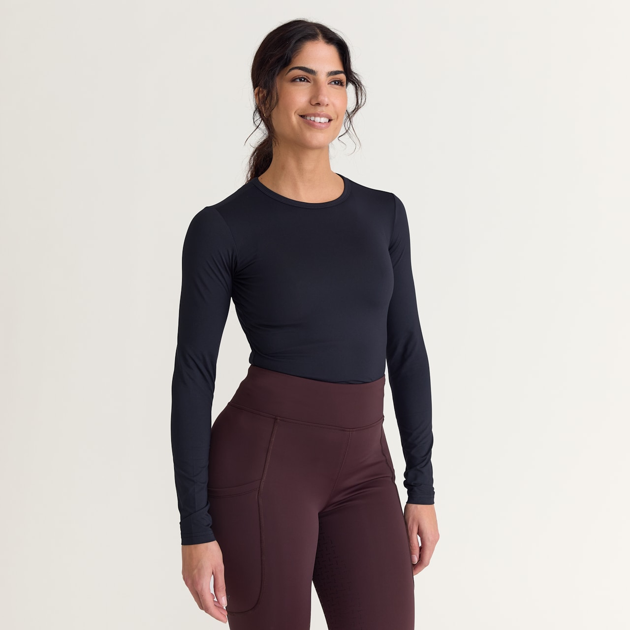 Langærmet funktionel og tætsiddende top. Blød og strækbar kvalitet, der giver optimal bevægelighed og komfort. Smudsafvisende og hurtigttørrende materiale.