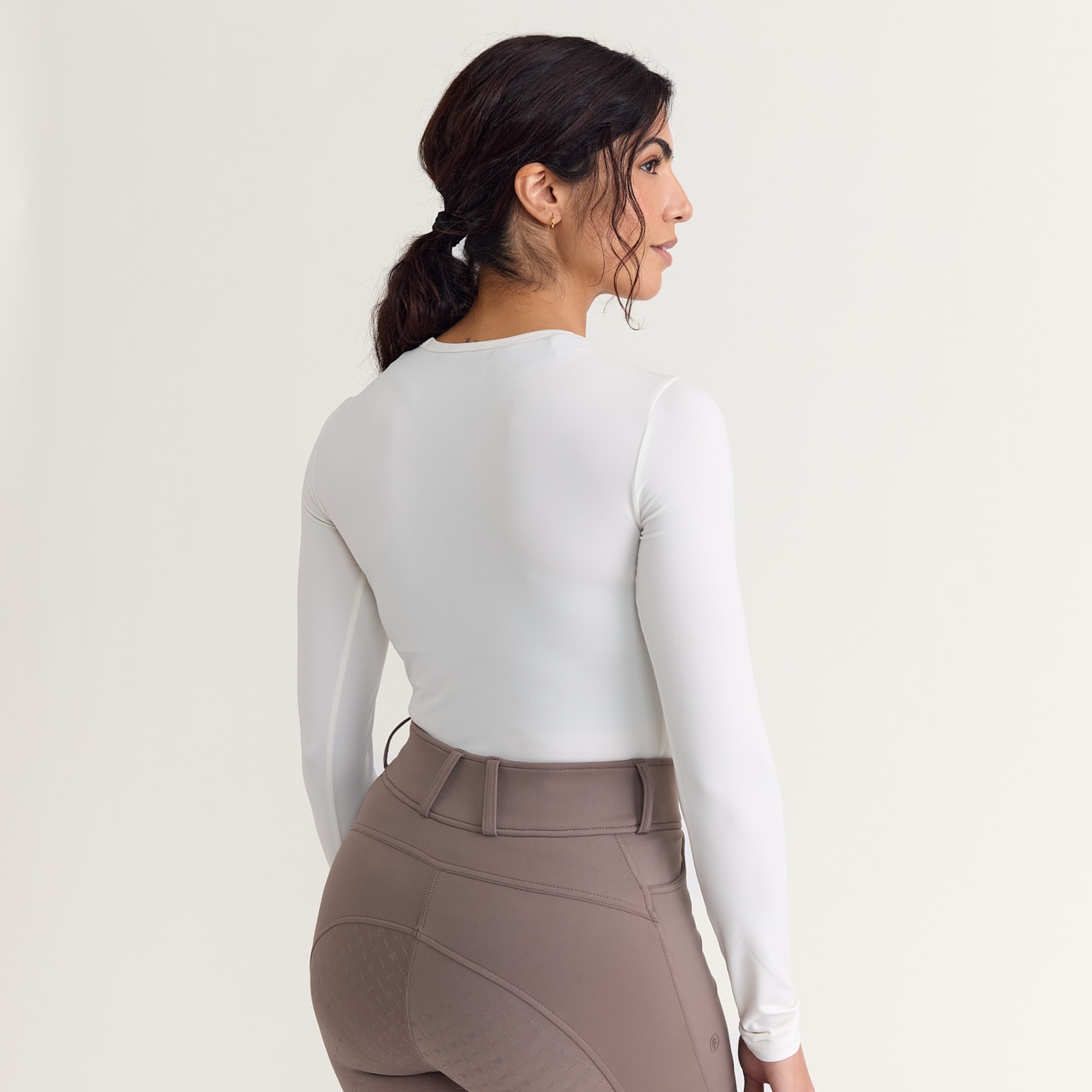 Langærmet funktionel og tætsiddende top. Blød og strækbar kvalitet, der giver optimal bevægelighed og komfort. Smudsafvisende og hurtigttørrende materiale.