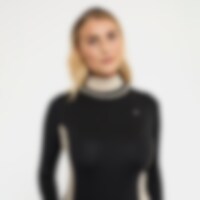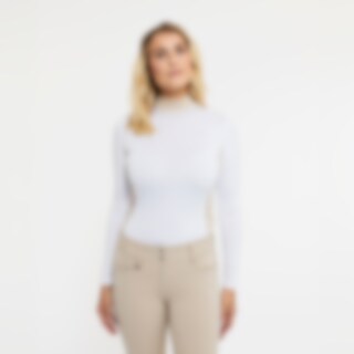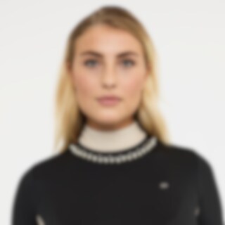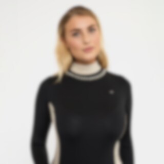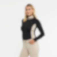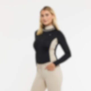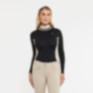 Langærmet trænings- og stævnetop i blødt og strækbart funktionsmateriale. Paneler i kontrastfarve, der giver et flatterende look. Dekorative detaljer af perler og rhinsten. Figursyet pasform med opretstående krave og skjult lynlås bagtil.