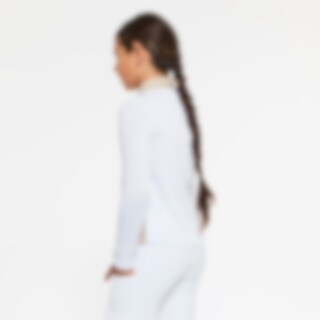 Langærmet trænings- og stævnetop i blødt og strækbart funktionsmateriale. Paneler i kontrastfarve og dekorative detaljer af perler og rhinsten. Ståkrave og skjult lynlås bagpå.