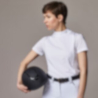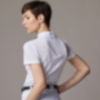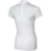 Kortærmet stævnetop i elastisk funktionsstof. Sidepaneler, ærmer og overdel af ryg i stribet netstof, som giver god ventilation og åndbarhed. Kraven har fine detaljer med rhinsten og logotryk. Diskret lynlåslukning bagpå.