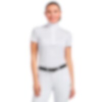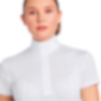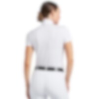 Stævnetop fremstillet af stretchmateriale med effektiv fugttransport, der giver en tør og kølig følelse på varme dage på konkurrencebanen. Kraven er nem at lukke med trykknapper og har et elegant look.