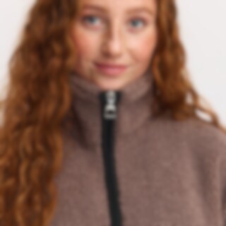En fleecejakke, der kombinerer varme og komfort med design. Blød pilé, der giver en trendy krøllet fårefornemmelse. Praktisk tovejslynlås med en dekorativ stigbøjledetalje på den øverste aftrækker. Lommerne er foret med åndbart mesh. Elastiske kantbånd la