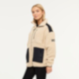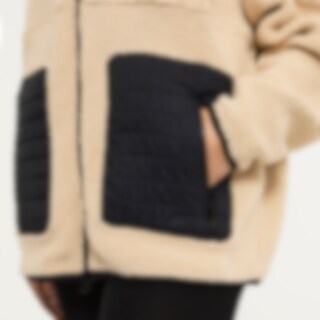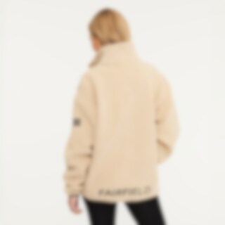 Jakke i teddypilé med høj krav. Quiltede detaljer på skuldre og forlommer giver jakken en moderne og behagelig følelse. Praktiske funktioner inkluderer to frontlommer og en brystlomme, alle lukkes med lynlås. Farfield-logoet pynter bagpå, mens et mindre logo på venstre arm udgør en diskret, men stilren detalje. Kantbånd i elastik ved ærmekanter og i underkant. Den afslappede pasform gør denne jakke ideel til både hverdag og træning.