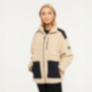 Jakke i teddypilé med høj krav. Quiltede detaljer på skuldre og forlommer giver jakken en moderne og behagelig følelse. Praktiske funktioner inkluderer to frontlommer og en brystlomme, alle lukkes med lynlås. Farfield-logoet pynter bagpå, mens et mindre logo på venstre arm udgør en diskret, men stilren detalje. Kantbånd i elastik ved ærmekanter og i underkant. Den afslappede pasform gør denne jakke ideel til både hverdag og træning.