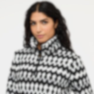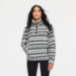 Oversized fleecetrøje i blød fiberpels og detaljer i imiteret læder. Indvendig i blød glat fleece. Sweateren har høj krave med halv lynlås og elastik ved ærmer og forneden. Trøjen har også en gennemgående lomme foran med mesh på indersiden.